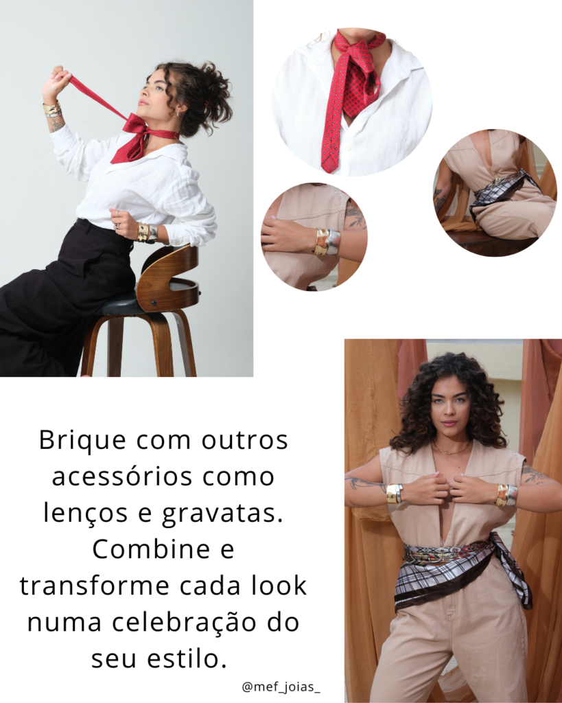 Os brincos podem ser o toque final que eleva qualquer look, mas a chave para um estilo impecável está na harmonia com outros acessórios. Se você adora lenços, aposte em brincos mais discretos – como argolinhas finas ou pérolas – para não competir com o estampado. Já com gravatas, a dica é brincar com contrastes: um brinco geométrico ou metalizado pode equilibrar a formalidade, enquanto modelos delicados mantêm a elegância. O segredo é não sobrecarregar – escolha um ponto focal e deixe os outros acessórios como coadjuvantes. Assim, seu visual fica sofisticado e cheio de personalidade.
