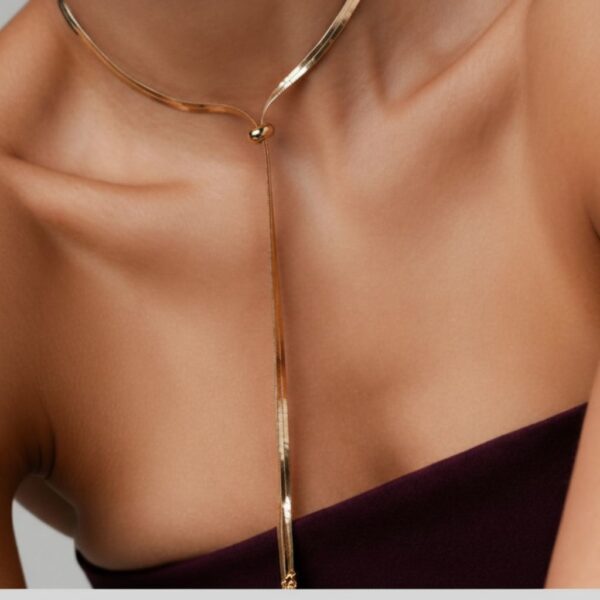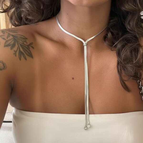 Colar Gravata Simples / Banhado a Ouro ou Ródio / Semijoia / MF Joias