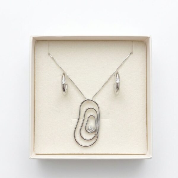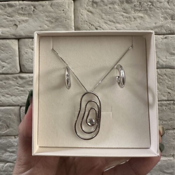 Conjunto Orgânico Liso Prateado C/ Pedra Zircônia / Semijoia / MF Joias