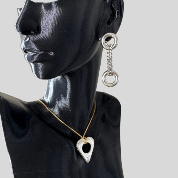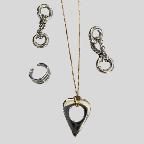 Kit Colar Pingente Coração Duo + Brinco Entrelaçado / Semijoia / MF Joias